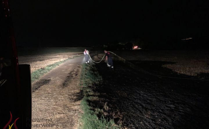 Die Einheit Stadtmitte wurde zu einem brennenden Mähdrescher in der Gemarkung Nieder-Ingelheim alarmiert.