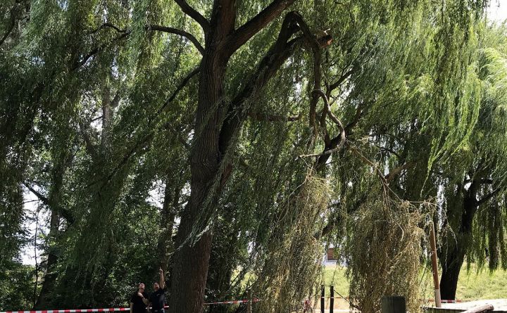 Die hauptamtlichen Kräfte der Feuerwehr Ingelheim zu einem Ast alarmiert, der drohte auf einen Gehweg zu stürzen.