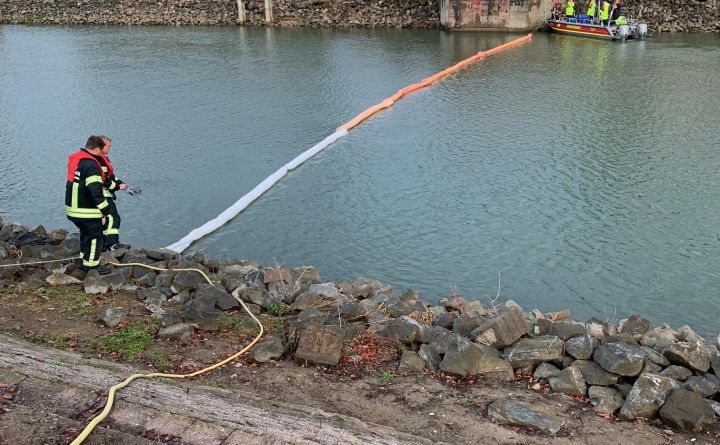 Die ehrenamtlichen Kräfte der Innenstadt wurden am Samstagabend mit dem Stichwort “W2 Öl auf Gewässer" zur Hafenmole in Frei-Weinheim alarmiert.
