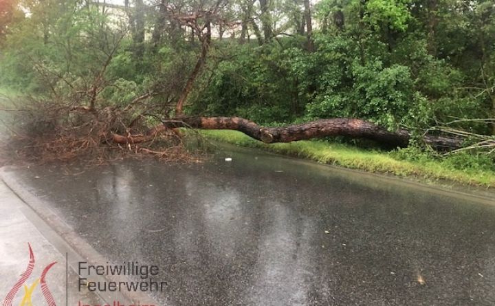 Die Einheit Heidesheim wurde aufgrund eines durchziehenden Gewitters zu einem umgestürzten Baum in den Stadtteil Uhlerborn alarmiert.