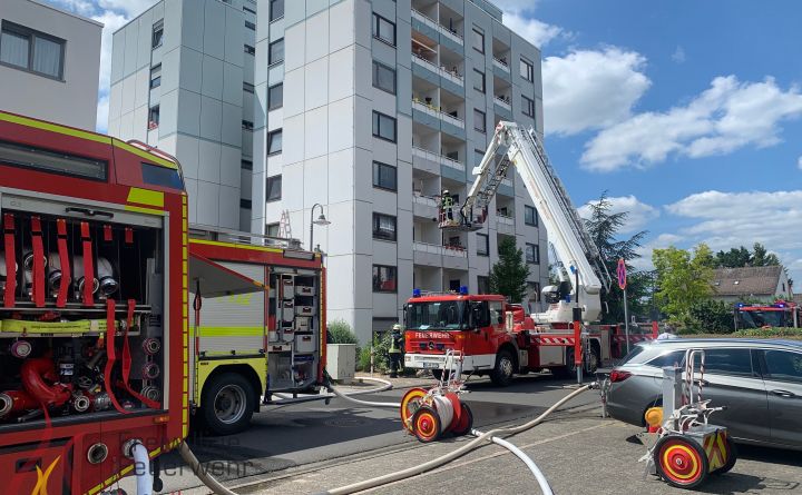 Um 01:23 Uhr in der Nacht von Freitag auf Samstag wurde die Einheit Stadtmitte sowie der Teleskopgelenkmast der Werkfeuerwehr Boehringer mit dem Stichwort "B2 Wohnungsbrand" nach Ingelheim-West alarmiert.